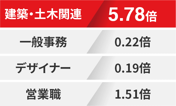 建築業界は業界内の高齢化が進んでいることから、慢性的に人材不足です。そのため、求人需要が高まっています。